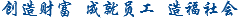 - ·創造財富是基礎,是成就員工、造福社會的前提,是出發點。在創造物質財富的同時創造精神財富,在造福當代人的同時福澤后代。